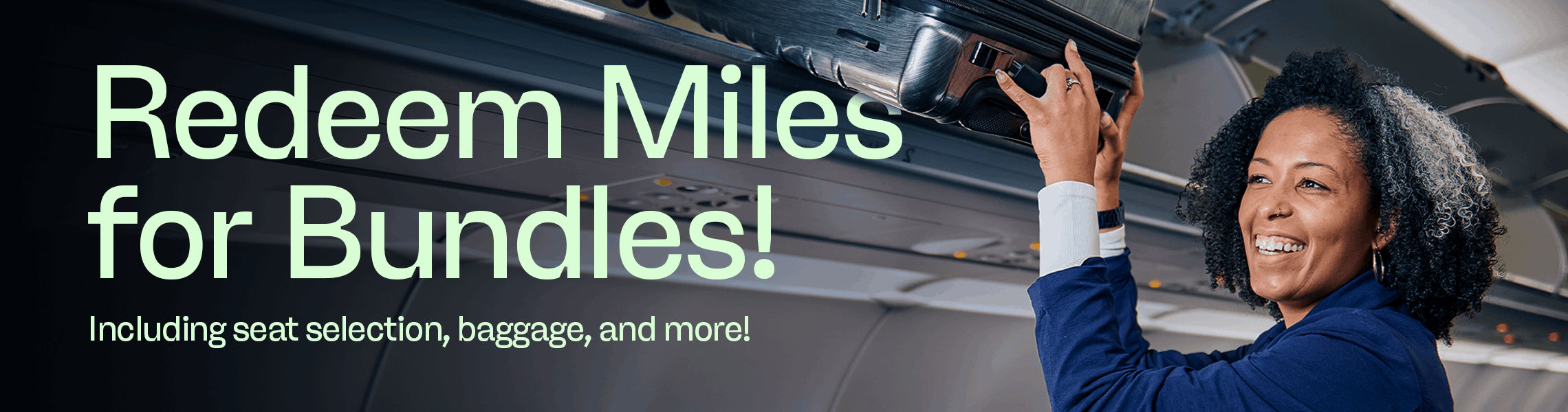 Redeem your miles for valuable bundles that include seat selection, baggage, no change fees, and more—starting at a low minimum redemption of just 2,000 miles. You can use your miles for bundles on all flights (unless sold out). Enjoy more comfort and convenience on your next flight!